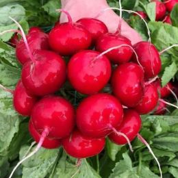 • Корнеплоды округлые, выровненные, красные, с блеском, массой 20-30 г, головка выпуклая. Мякоть белая, нежная, сочная.